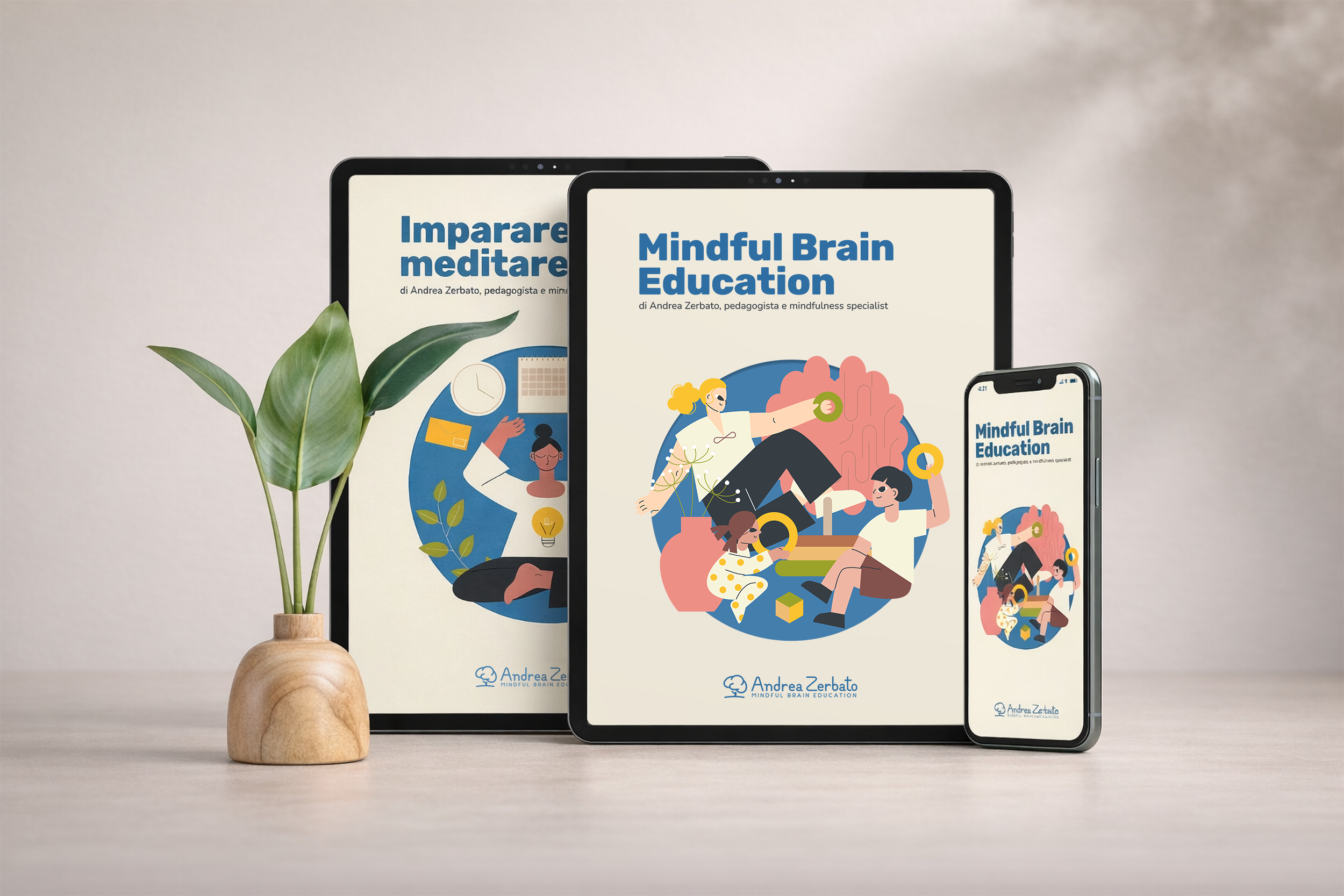 2 manuali e-book: “Mindfulness per principianti: impara a meditare da 0 per ritrovare calma e serenità” e “Mindful Brain Education” che racchiude i principi di un'educazione consapevole.